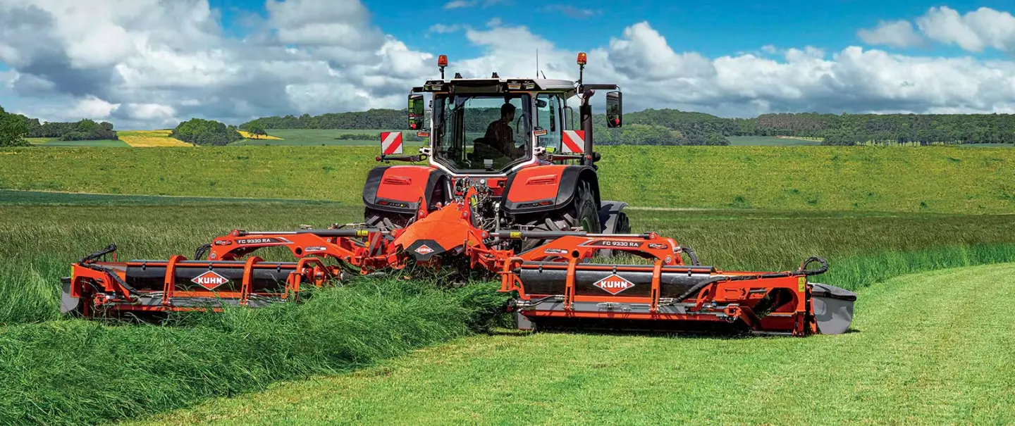 To choose from: central delivery (width of 1.80 to 3.60 m for FC 9330 RA / 2.20 to 4.00 m for FC 9830 RA), delivery with one side raised (18 m cut delivered over 12 m for raking by a 4-rotor rake), flat delivery | To choose from: central delivery (width of 1.80 to 3.60 m for FC 9330 RA / 2.20 to 4.00 m for FC 9830 RA), delivery with one side raised (18 m cut delivered over 12 m for raking by a 4-rotor rake), flat delivery |