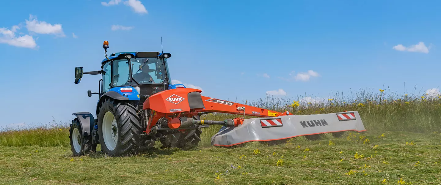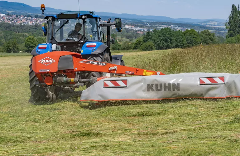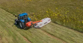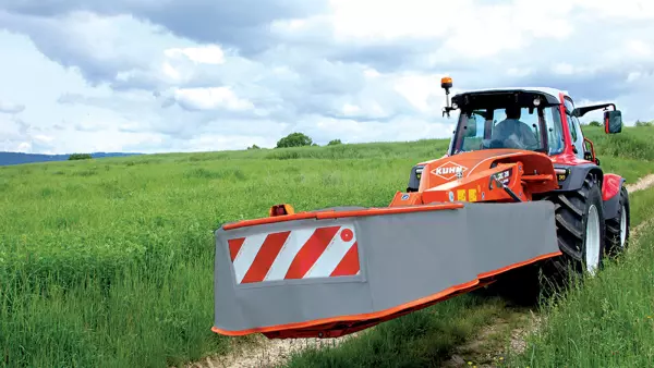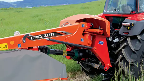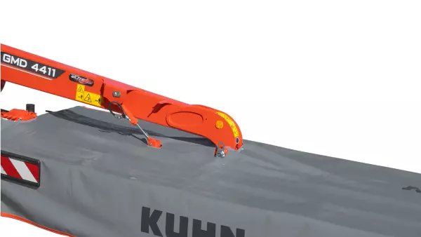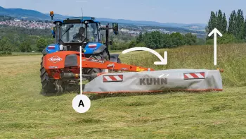No farmer can allow their mower to get damaged mid-season by hitting an obstacle or a wrong manouvere. These mowers are equipped with an active system that ensures constant ground pressure, up to an angle of 11°. Should the unit come into contact with an obstacle, ground pressure is reduced and the mower unit pivots up to 25 degrees to the rear and passes over the obstacle. The active Non-Stop breakaway system is also effective when the cutter bar is impacted on the left as the arm's pivot point is far enough away from the first discs (A). The mower unit returns to its initial work position automatically with the NON-STOP system. The suspension and NON-STOP safety system combination of this machine is unique in the market.