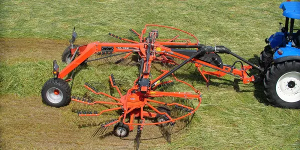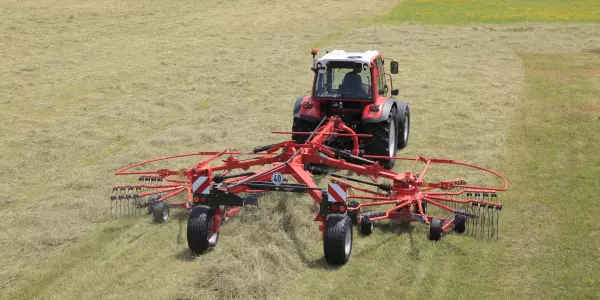 GA 6501 and GA 7501+ twin rotor rakes deliver central swaths. They work between 5.65 m and 7.40 m. Their raking quality is impressive and they produce perfect swaths for fast dry-down.