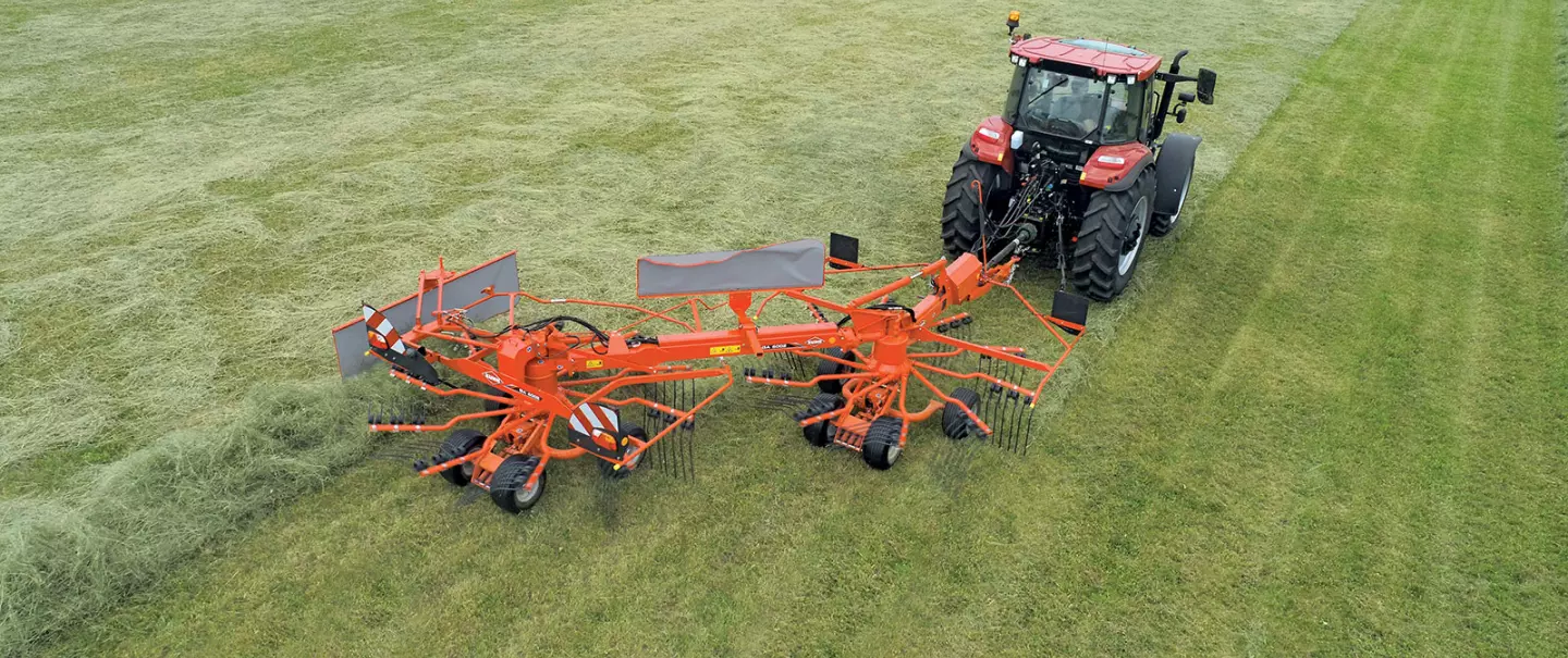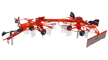 Raking width is hydraulically adjustable from 3.00 to 5.80 m, therfore varying forage densities, bypassing obstacles and finishing off fields are no longer a problem. For very dense forage and for producing swaths at night, the GA 6002 can also deliver two swaths from each pass.
