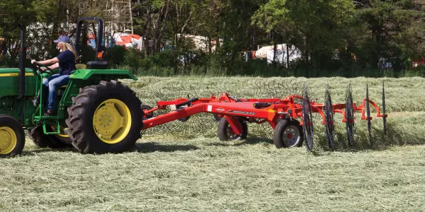 Available in 12-, 14- and 16-wheel configurations, the SR 600 GII Series SpeedRake® wheel rakes feature working widths ranging from 25’ to 31’."