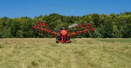 - The small diameter rotors adapt individually to the ground profile and the carrying chassis, ensuring efficient turning over and fast drying of the forage.